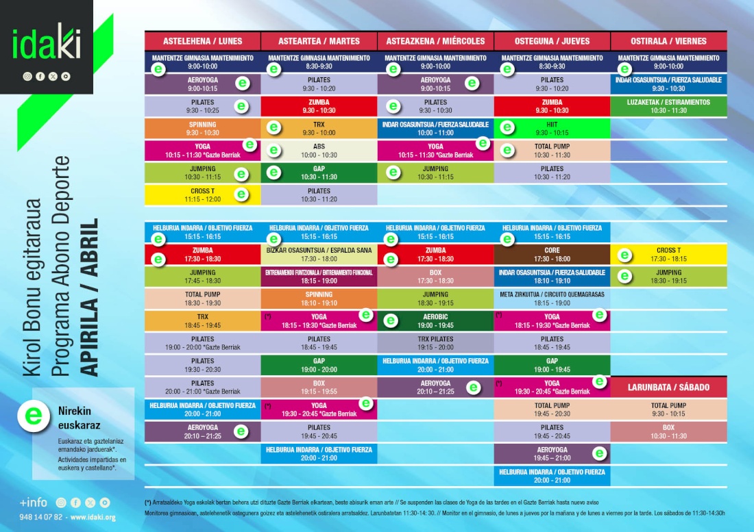 Gogoan izan jarduera-erreserba BETI egin behar duzula webgunearen bidez. Bestela, ezin izanen duzu parte hartu. Erreserba egiteko moduari edo beste edozein gairi buruzko zalantzarik izanez gero, jarri harremanetan idaki@ansoain.es helbidean edo 948 14 07 82 telefonora hots egin.